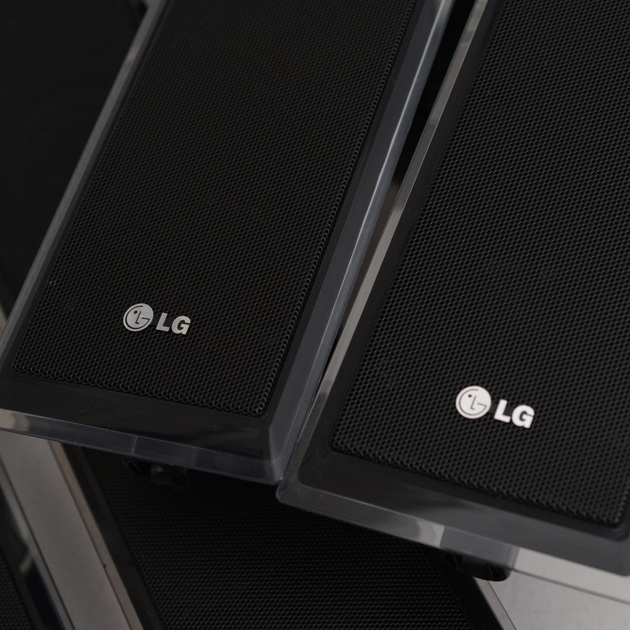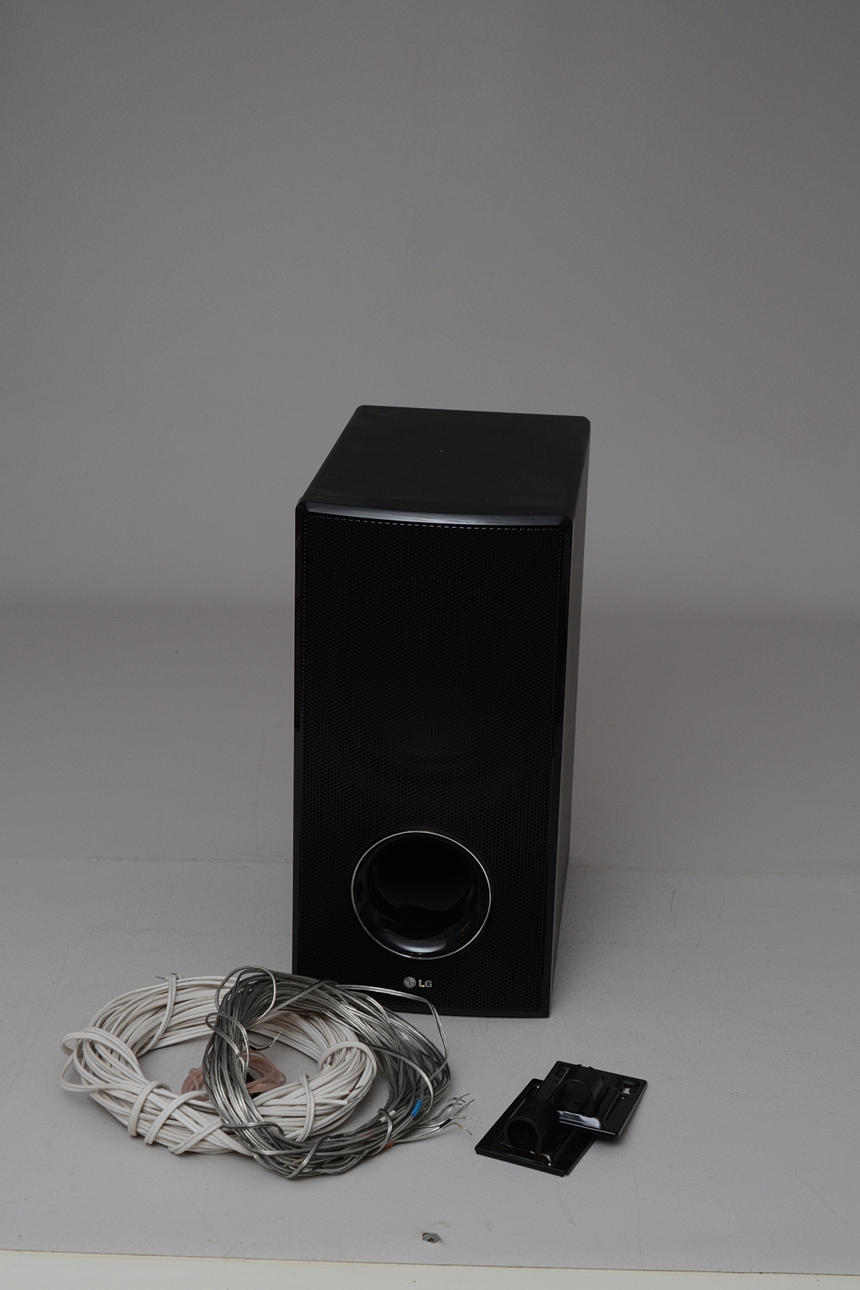 Högtalare saknar fotstativ, väggfäste finns.