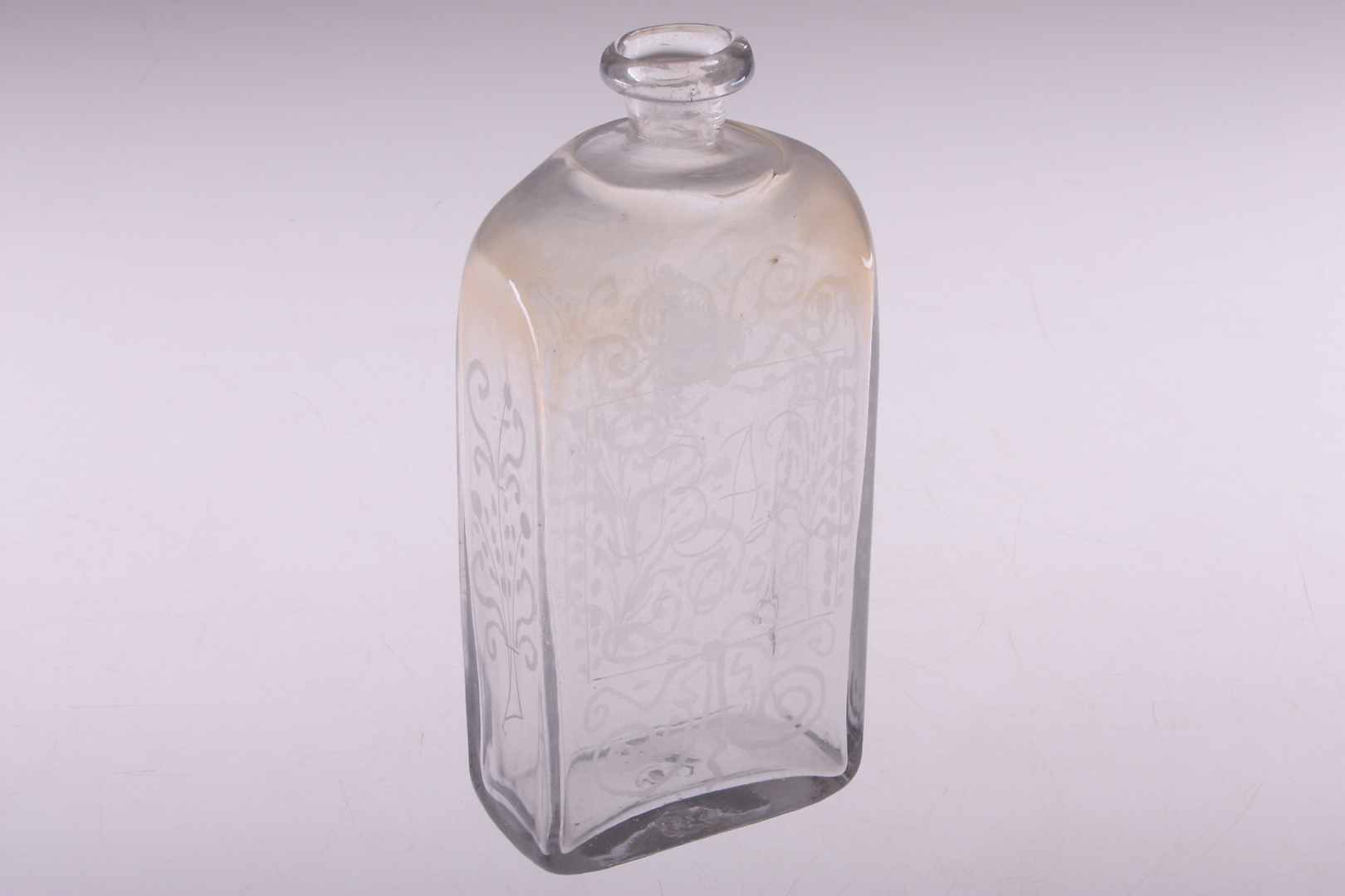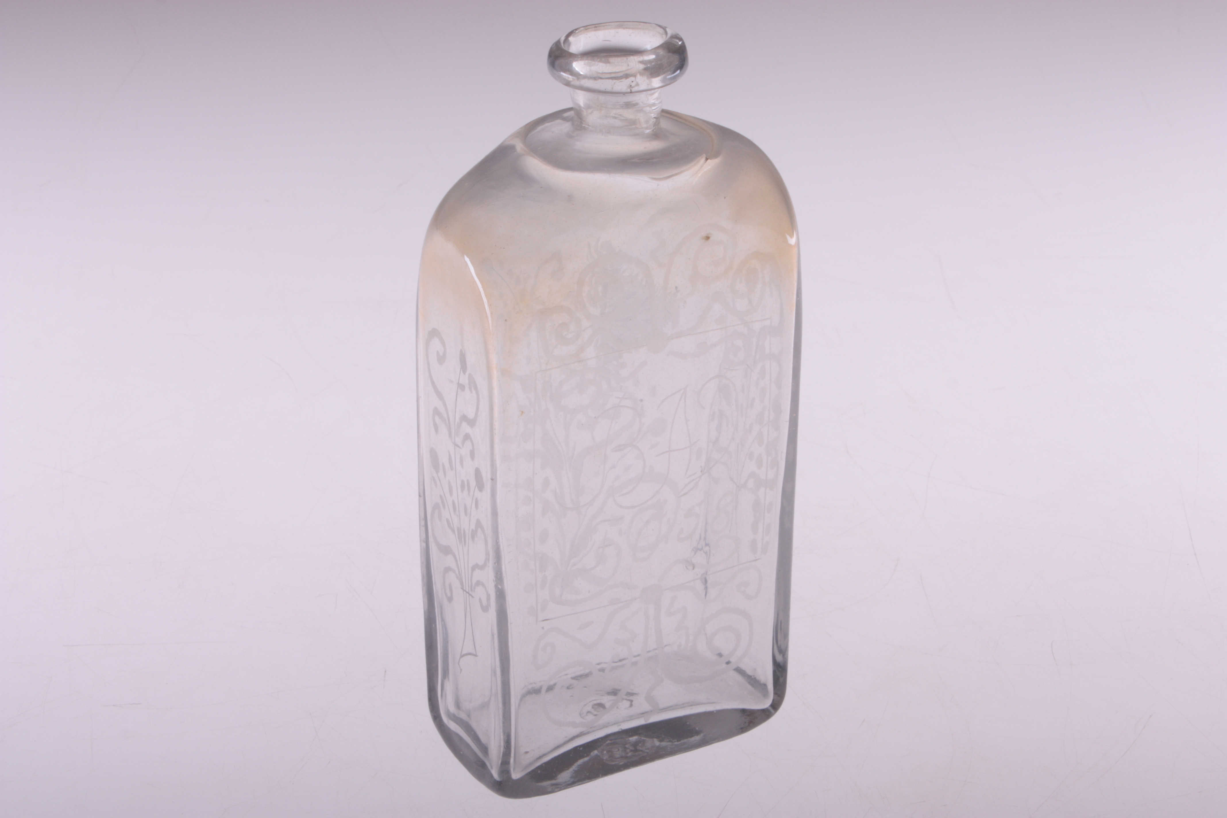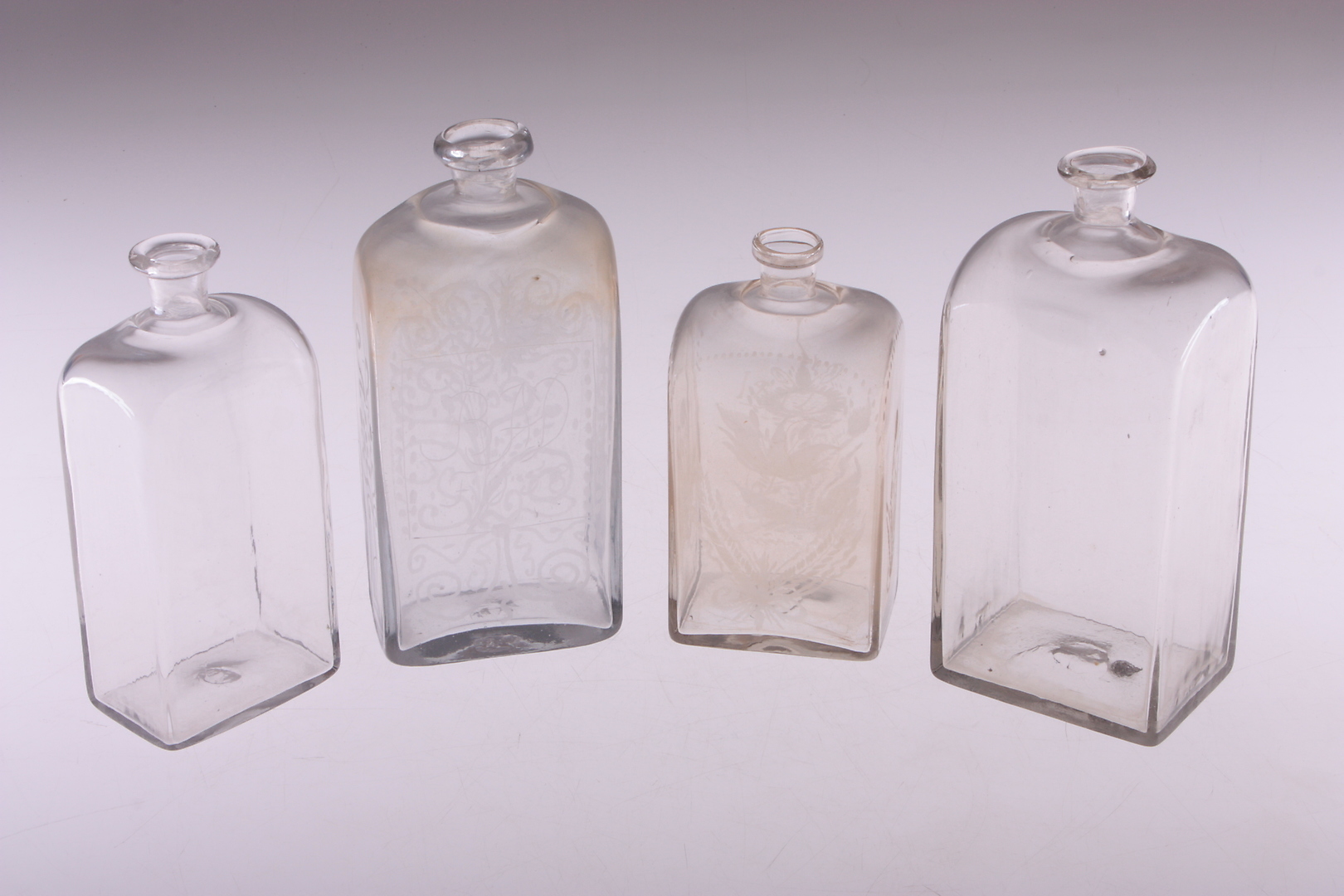 543390. GLASFLASKOR, 4 st, delvis graverade.