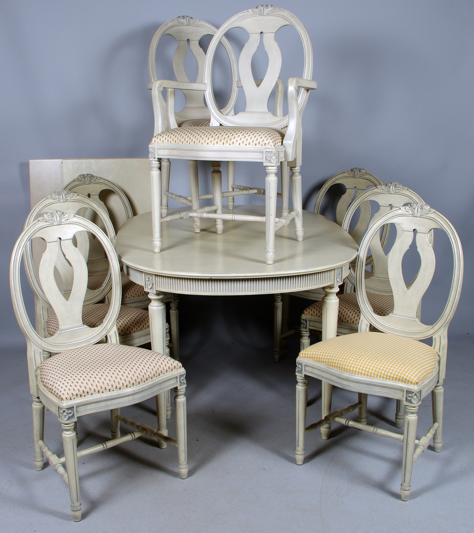 54385. MATGRUPP, vitmålad, gustaviansk stil.