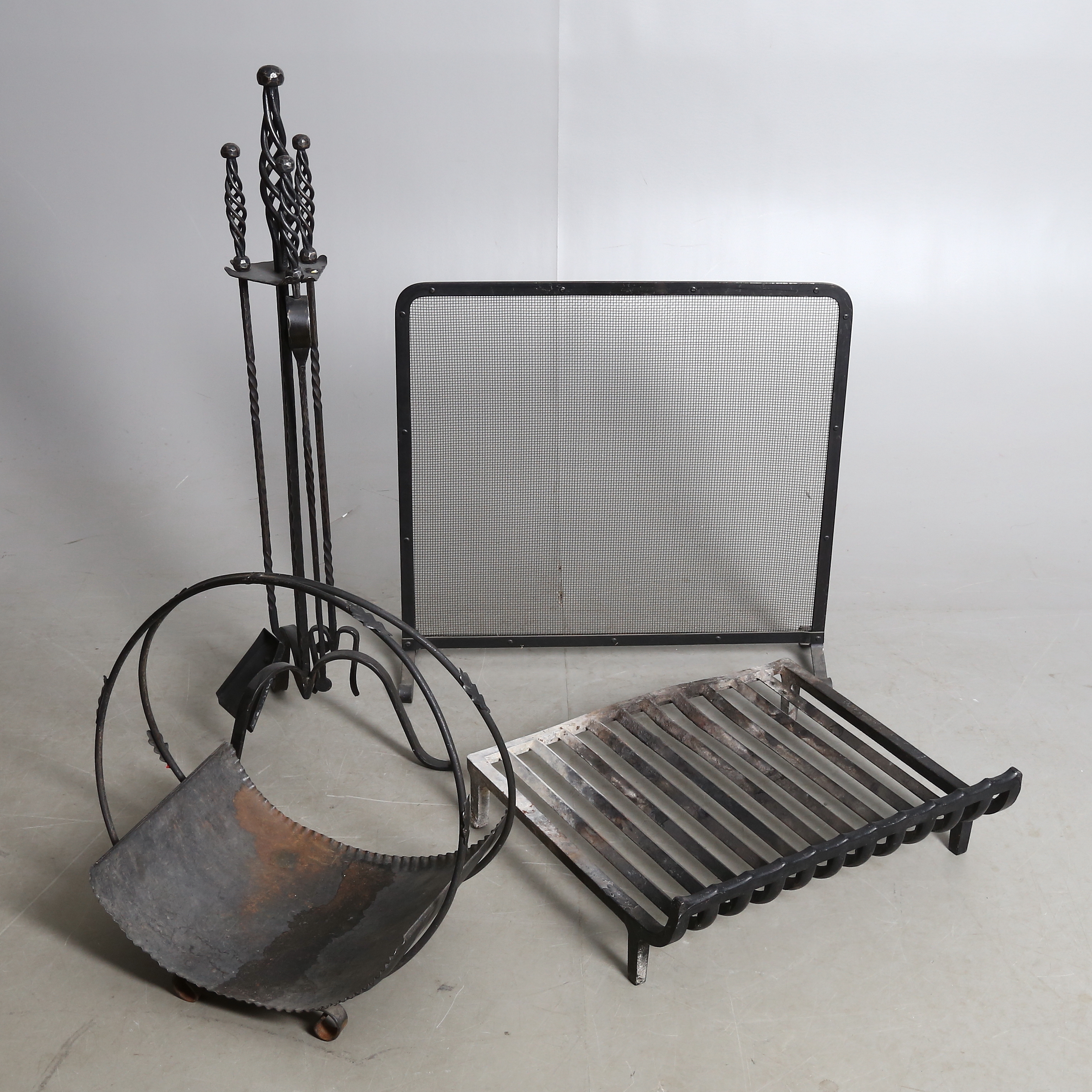 544434. ELDSTADSTILLBEHÖR, 4 delar, smide, 1900-tal.