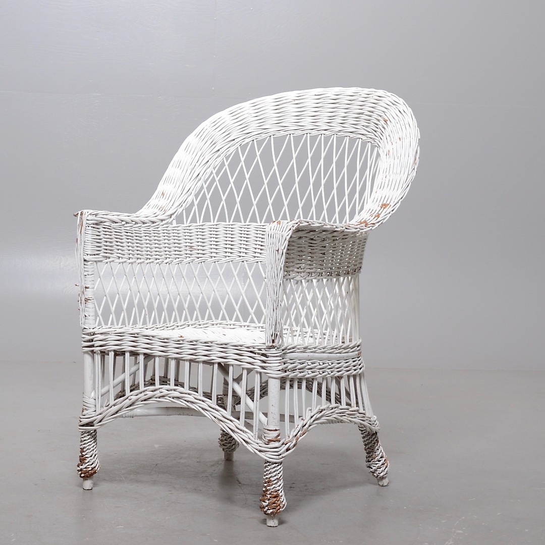 545490. KORGSTOL, ÄLDRE, VITMÅLAD.