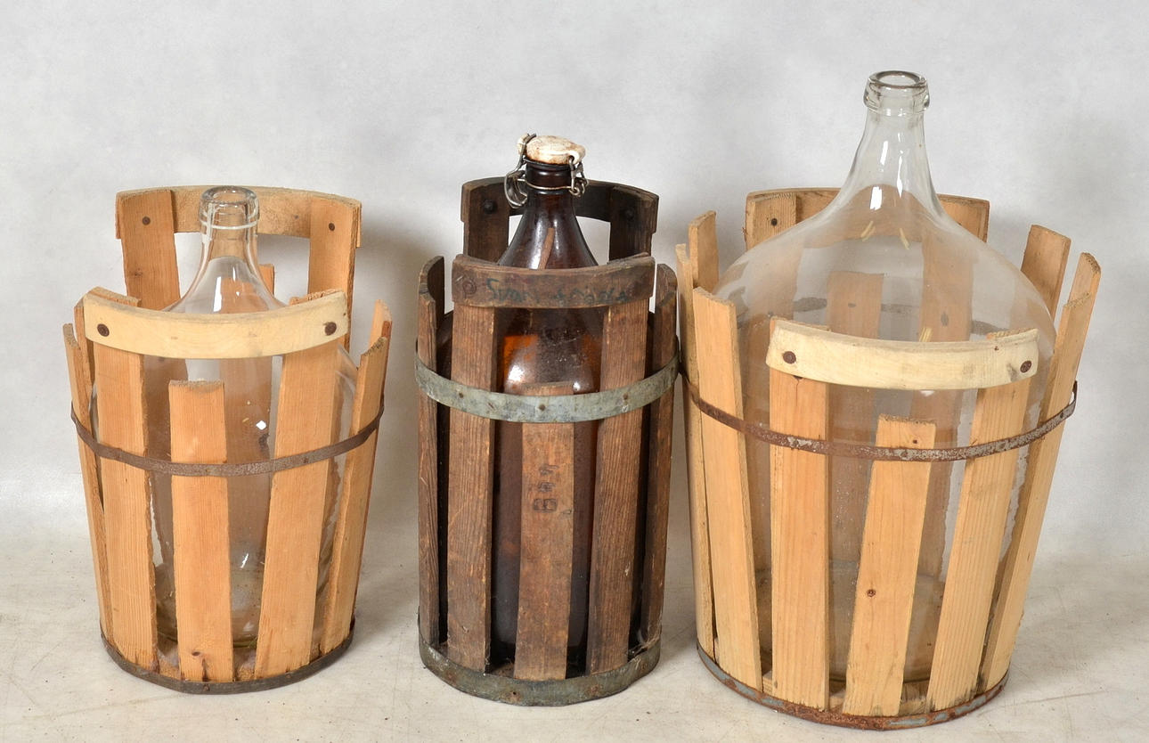 545494. GLASFLASKOR I STÄLLNING, 3-stycken.