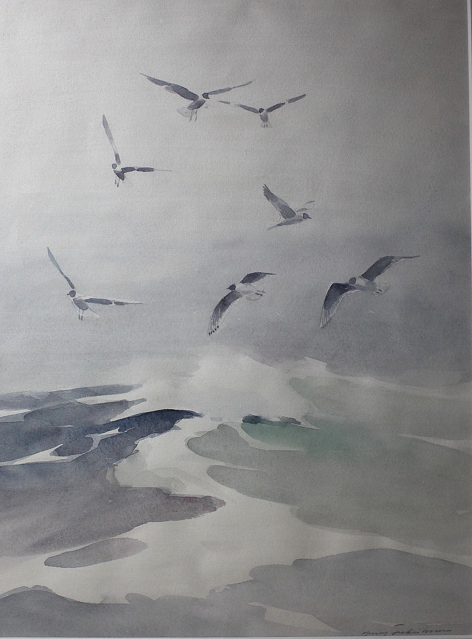545540. HENRY FREDRIKSSON. akvarell, sjöfåglar, signerad.