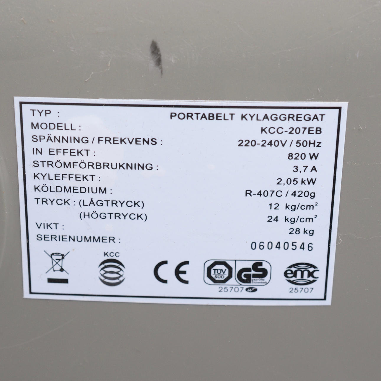 PORTABELT KYLAGGREGAT. KCC.