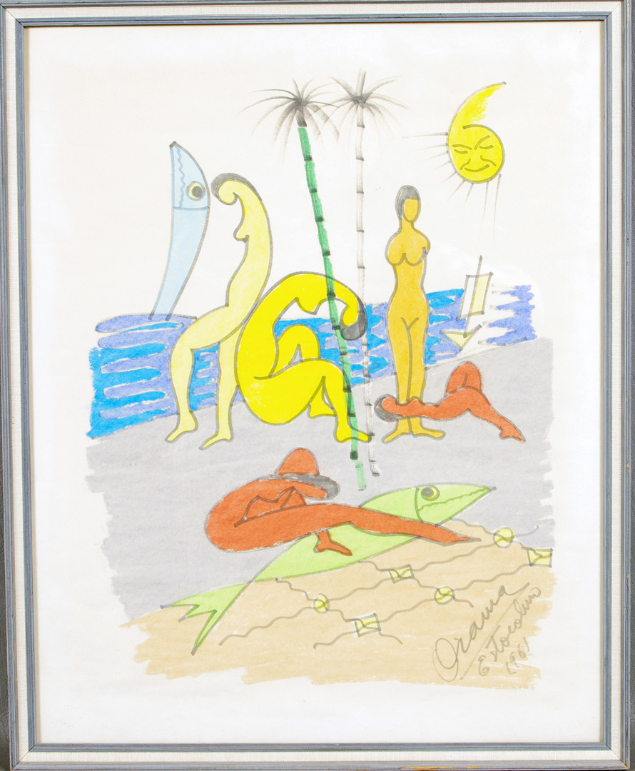 54933. OKÄND KONSTNÄR. signerad, strandmotiv, teckning.