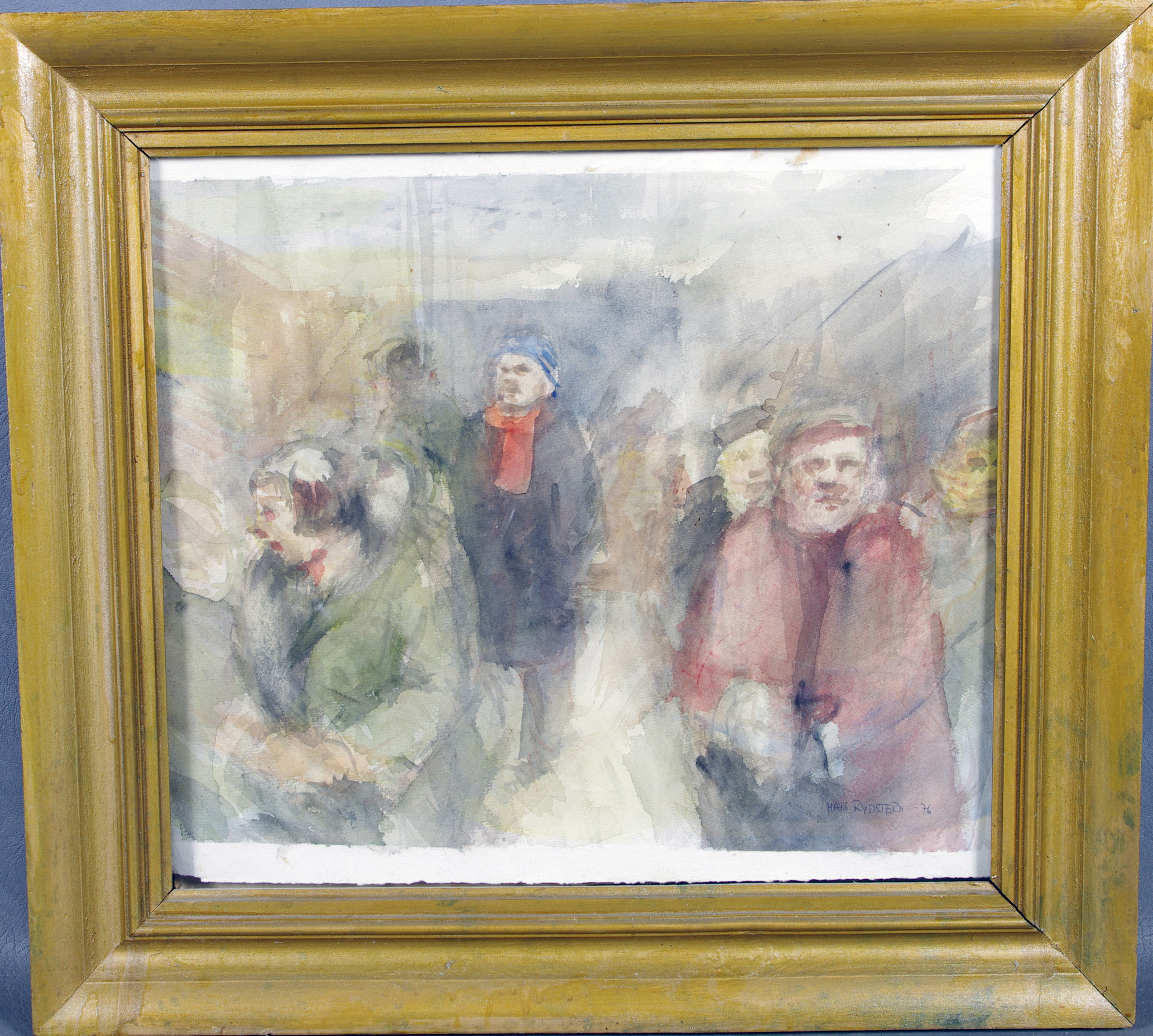 54938. MATS RYDSTERN. Väntande människor, akvarell.