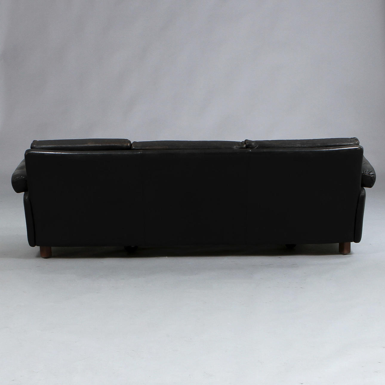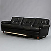 3-sits, svart läder, längd ca 220 cm.