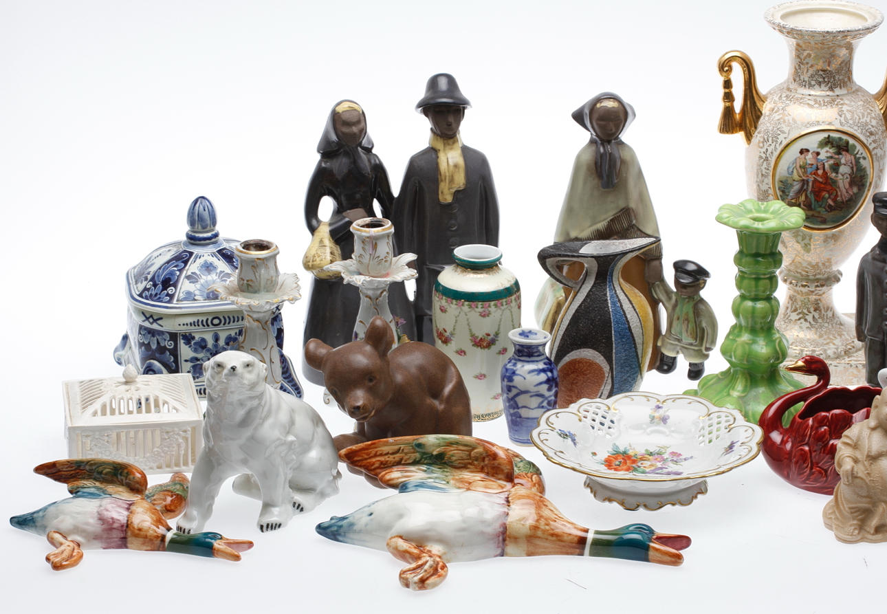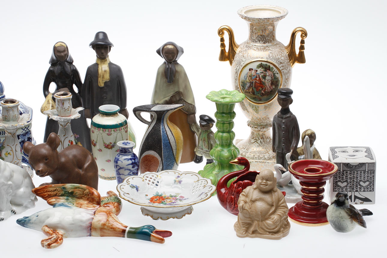 Bland annat figuriner, vaser, ljusstakar med mera.