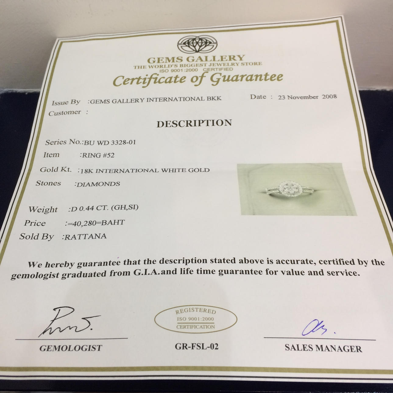 Karatvikten av diamanter är ca 0.44ct Totalt