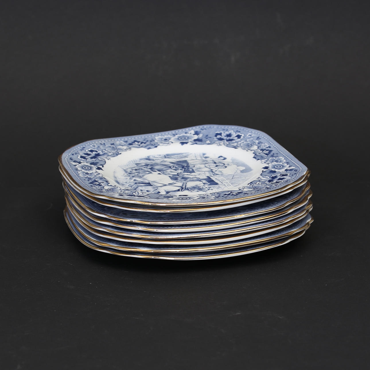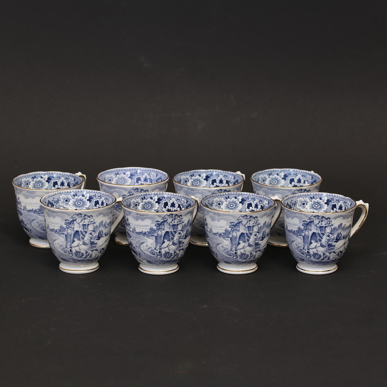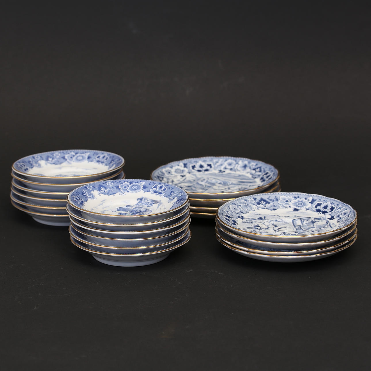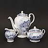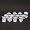12st Mockakoppar, 12st Mockafat, 8st kaffekoppar, 8st kaffefat, 8st assietter, 1st Kaffekanna, 1st sockerskål, 1st gräddkanna.