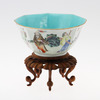 Dekor av figurscen i polykroma emaljfärger. Diam 18 cm.