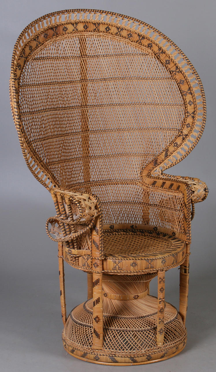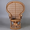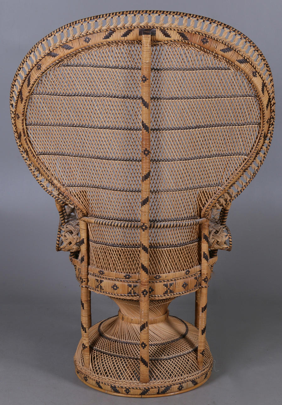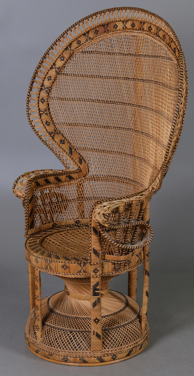 Fåtölj i flätad rotting, bård med dekoration i svart mönster Bredaste partiet 100, höjd 147 cm.