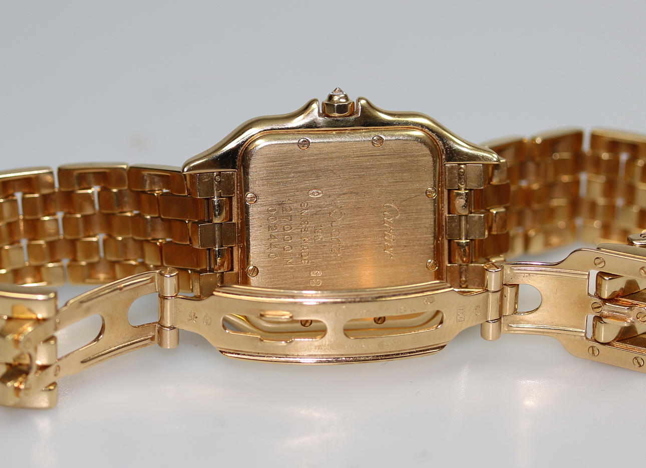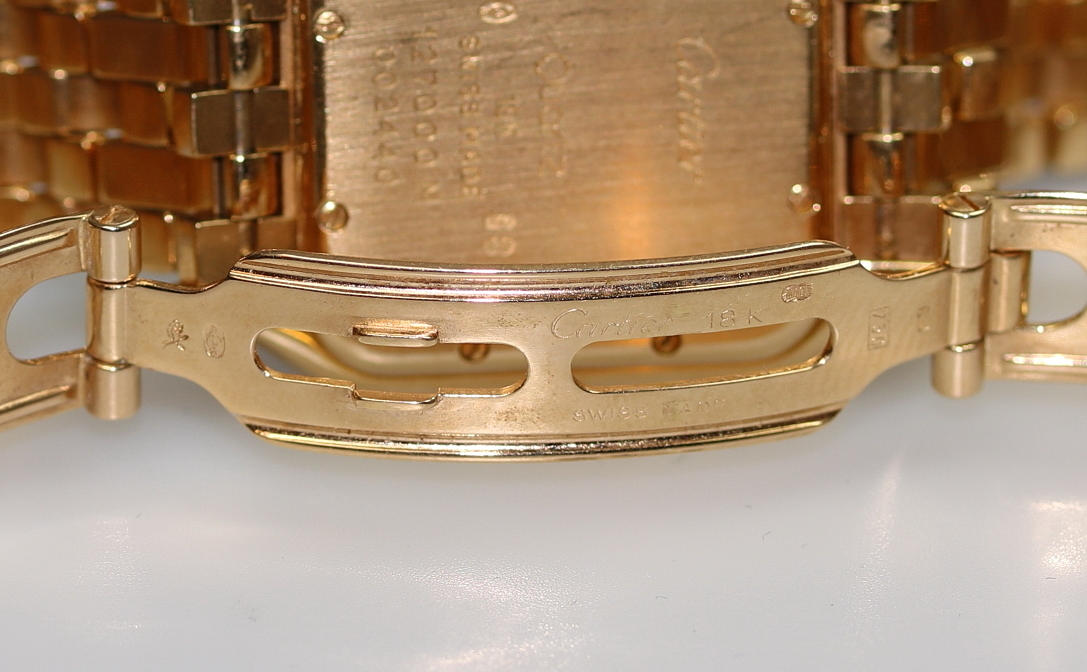 Quartz, 750 Guld, vikt: 113.87 gram, datum visare, Ø. 2,7 x 2,7 cm, ram med diamanter, Nr. 127000M, 002440, i originalkartong med papper.