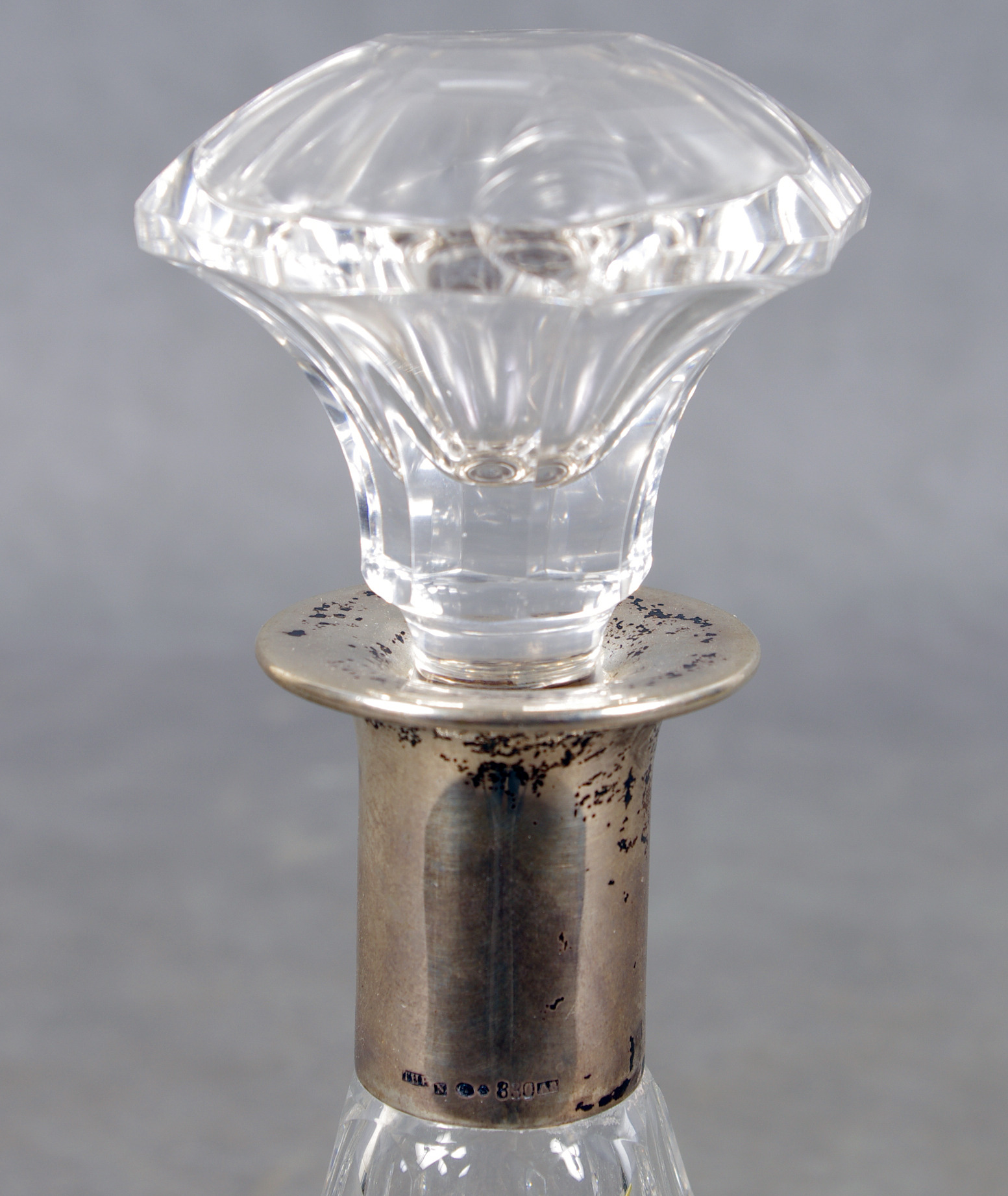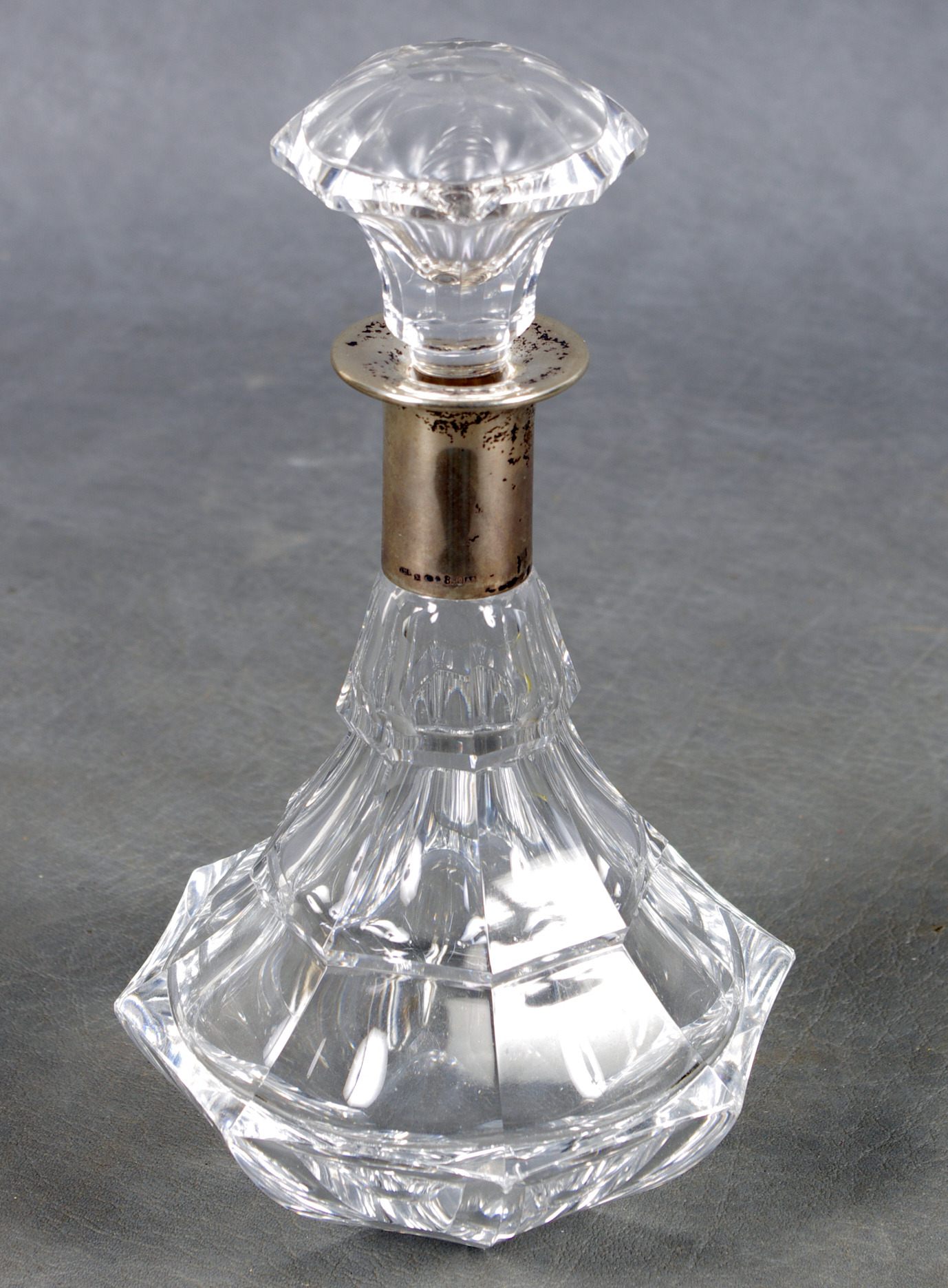 56719. KARAFF, kristall med silverkrage.