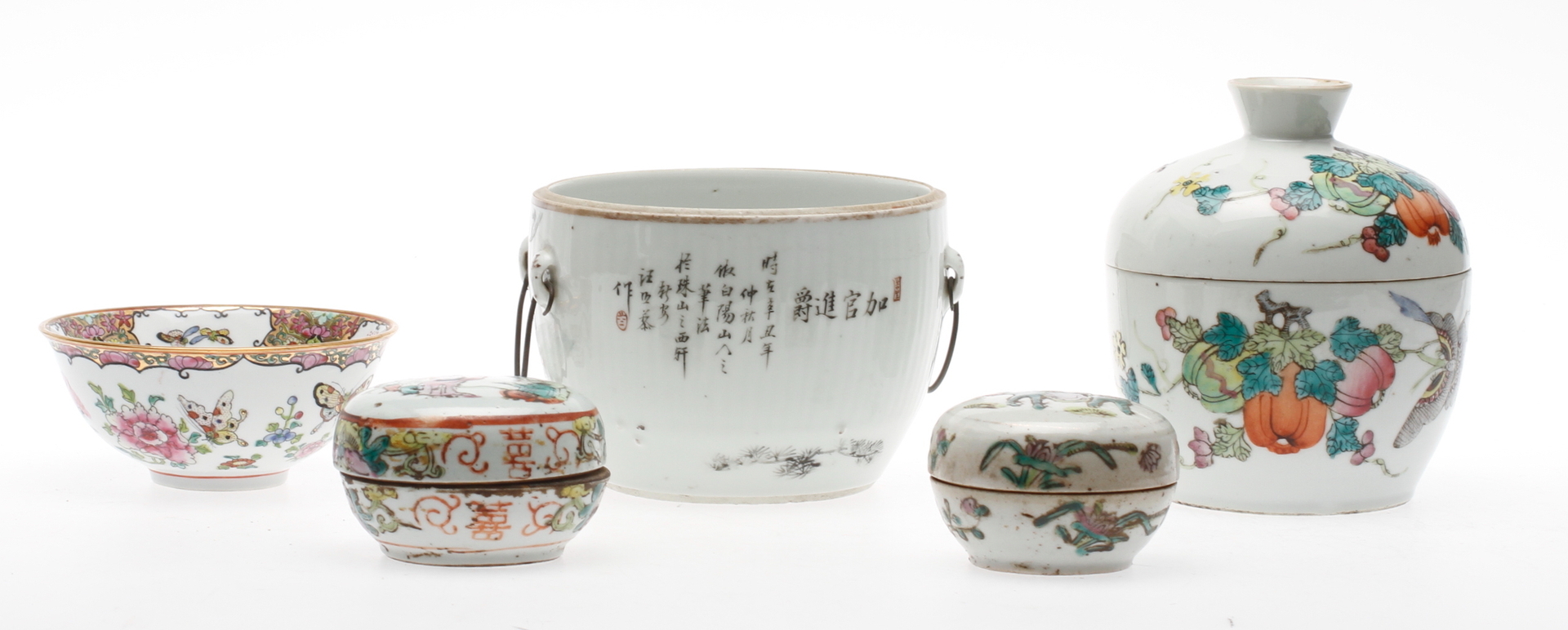 56791. OSTINDISKA FÖREMÅL, 5 delar, 1900-tal.