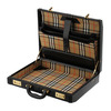Svart skinn. Invändigt fordrad i Burberrys rutiga mönster. 43 x 34 x 9 cm.