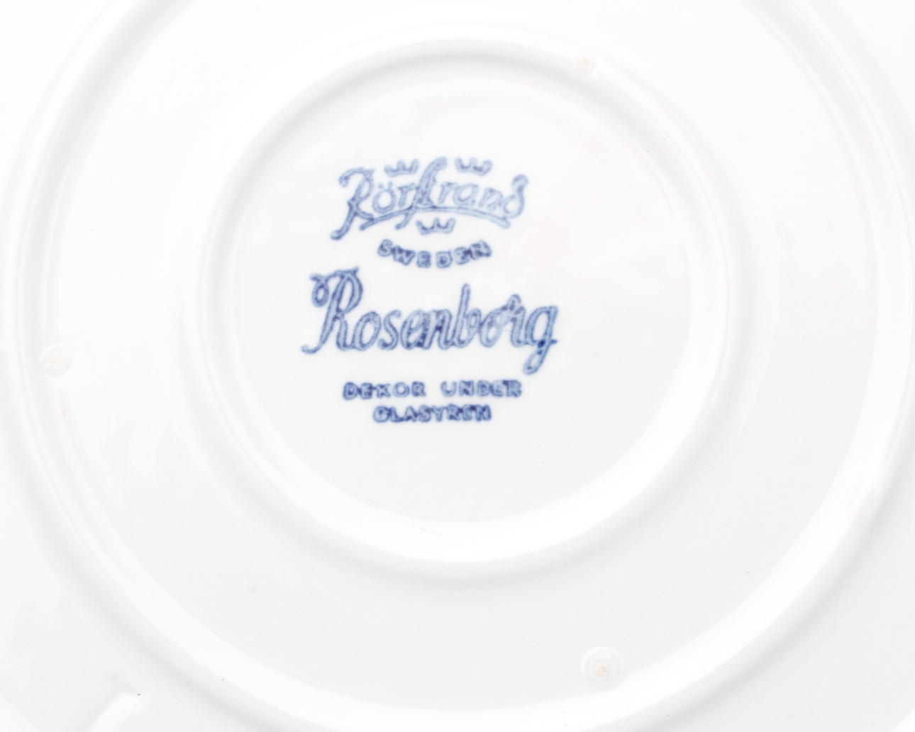 Bland annat 6 koppar samt 5 fat, Upsala Ekeby Gefle. 6 assietter, röd rubin med mera.