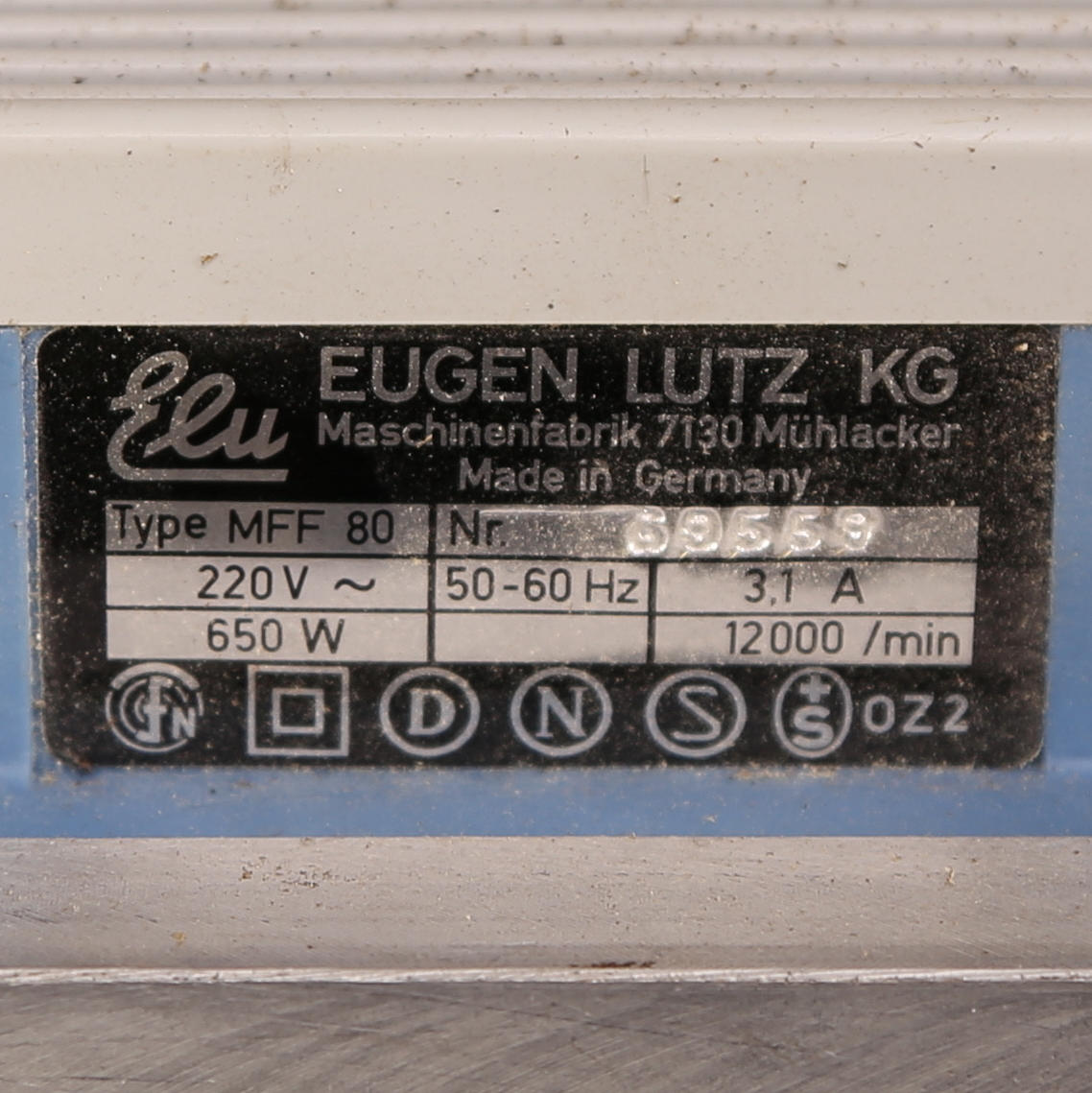 Kutter, Elu - Eugen Lutz, 650W, Hobel - Set - MFF80, gul plåtlåda, Tyskland. Gravyrmaskin i grön låda.