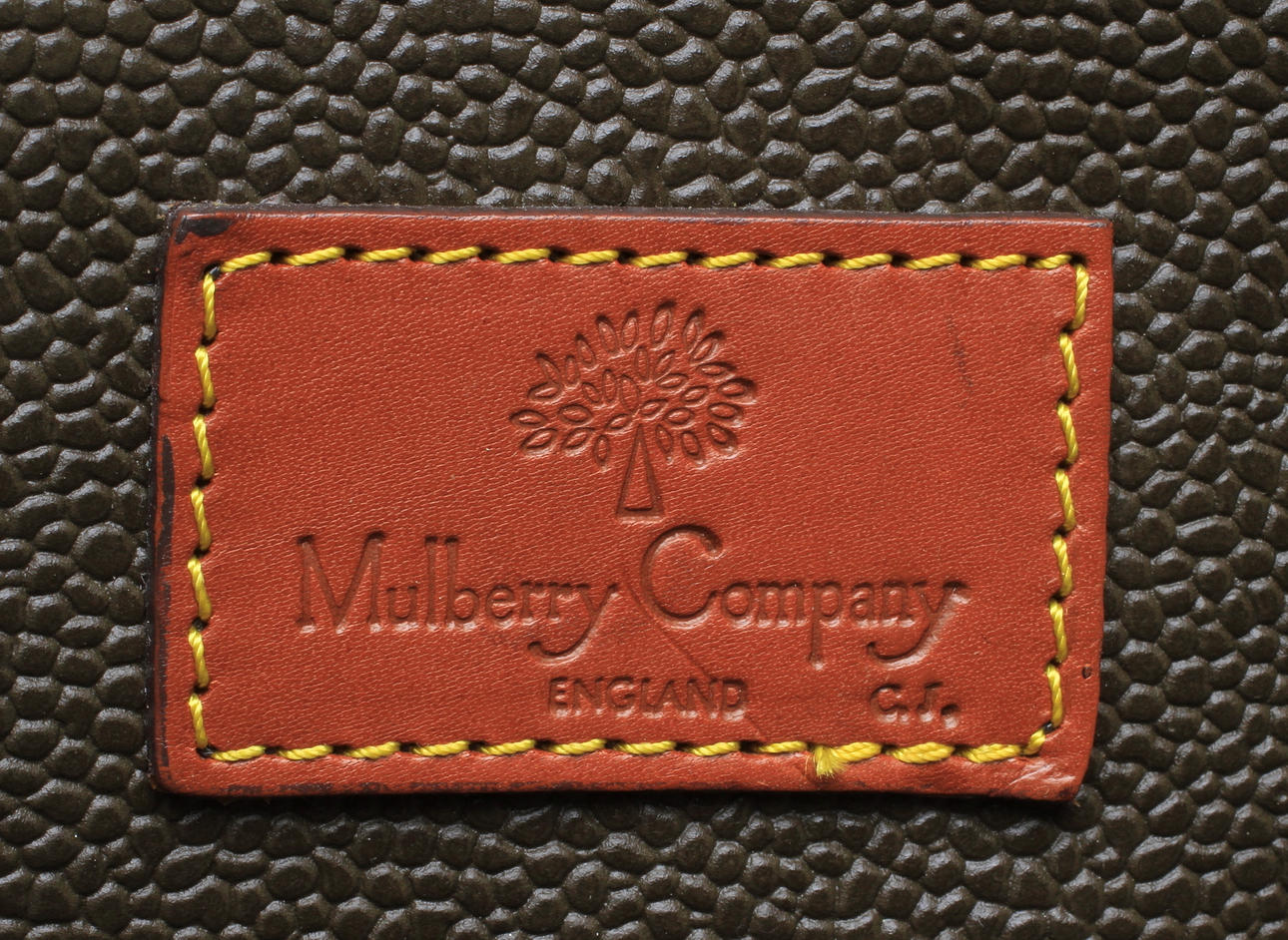 Märkt "MULBERRY ENGLAND" på etikett i läder. samt textiletikett med märkt Made in Italy. Brickmärkt med 001934.