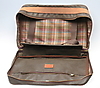 Fodrad, dragkedsförsedd resväska.