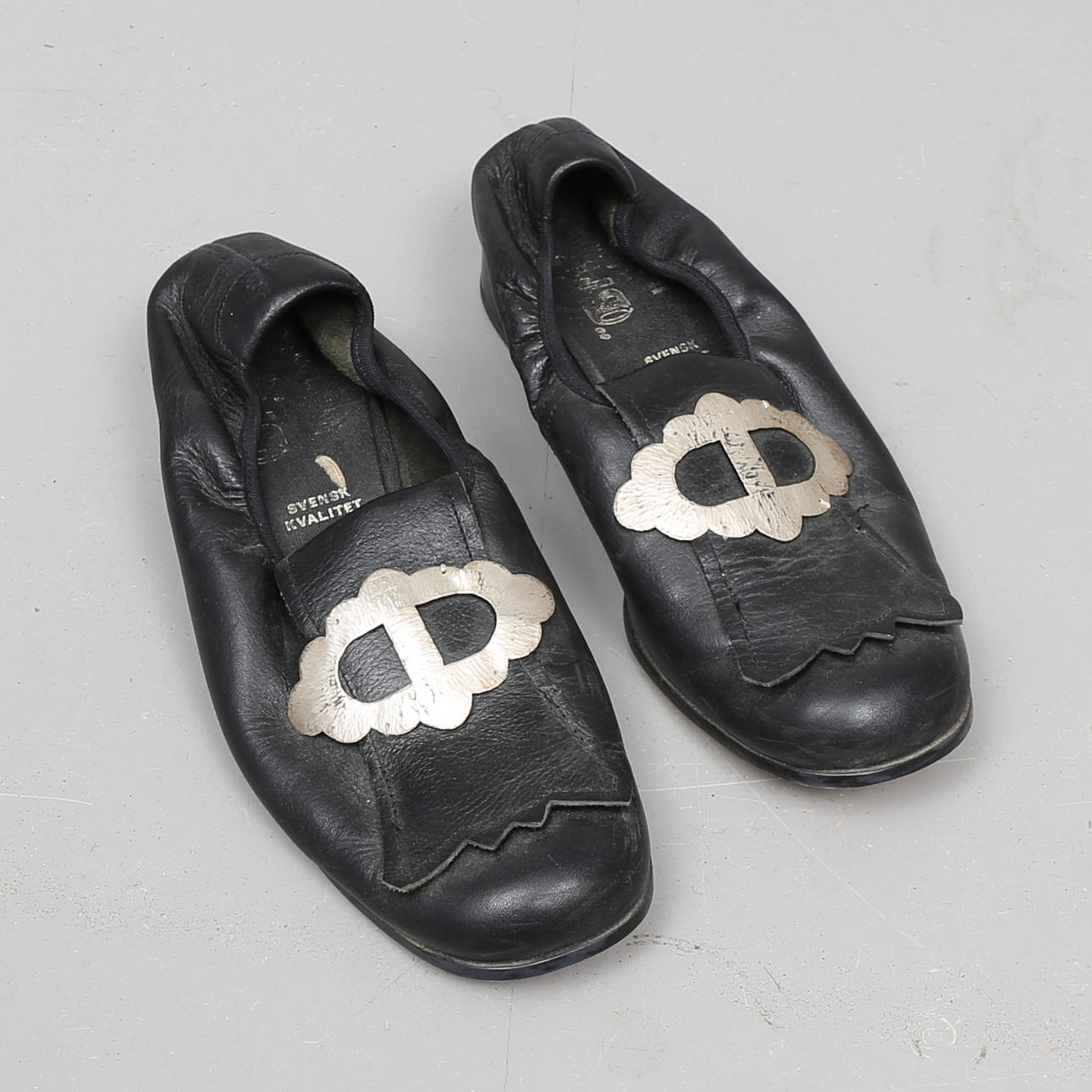 Band, skor storlek 6 med silverspännen.