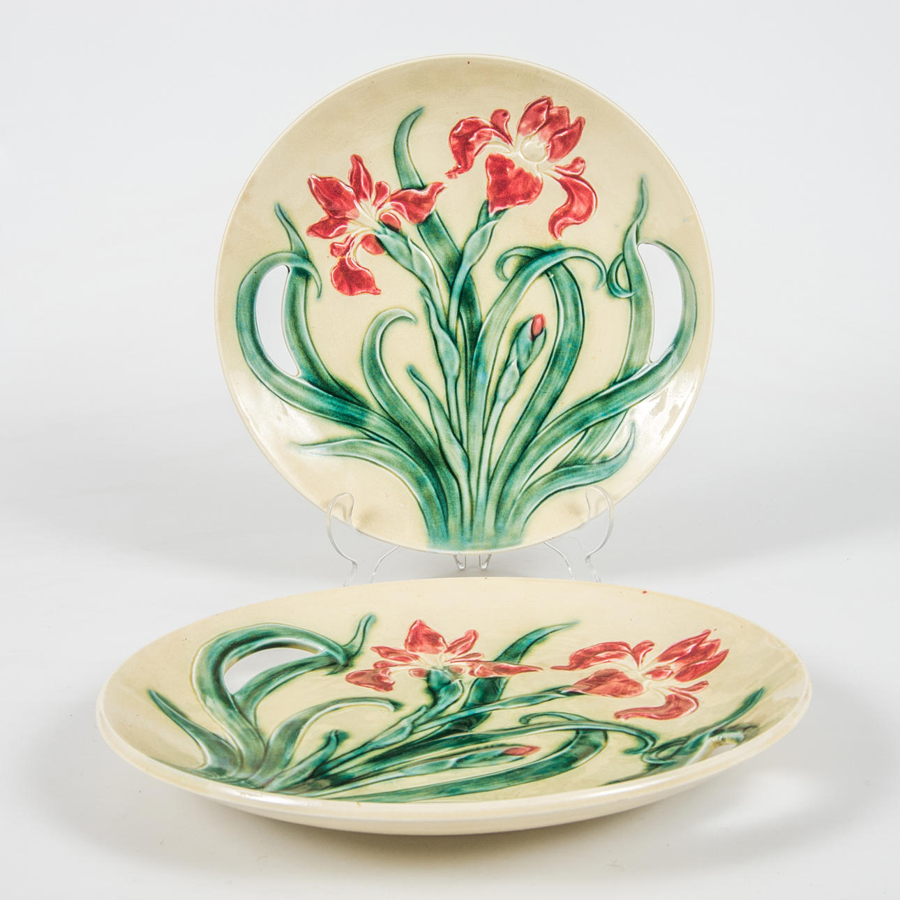 575176. FAT, 2 stycken, majolika, jugend, Gustavsberg.