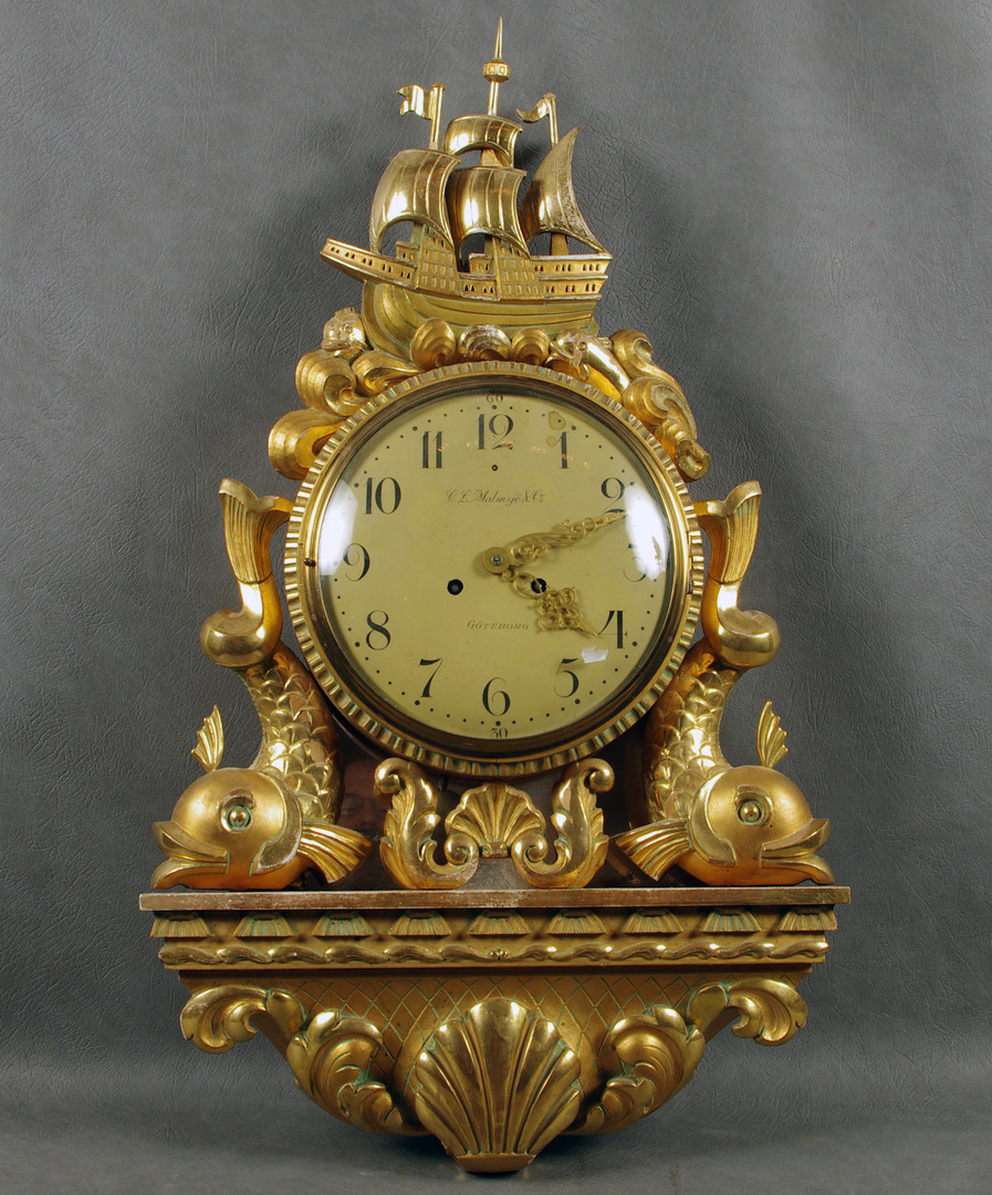57574. VÄGGPENDYL, förgylld, C.L. Malmsjö.