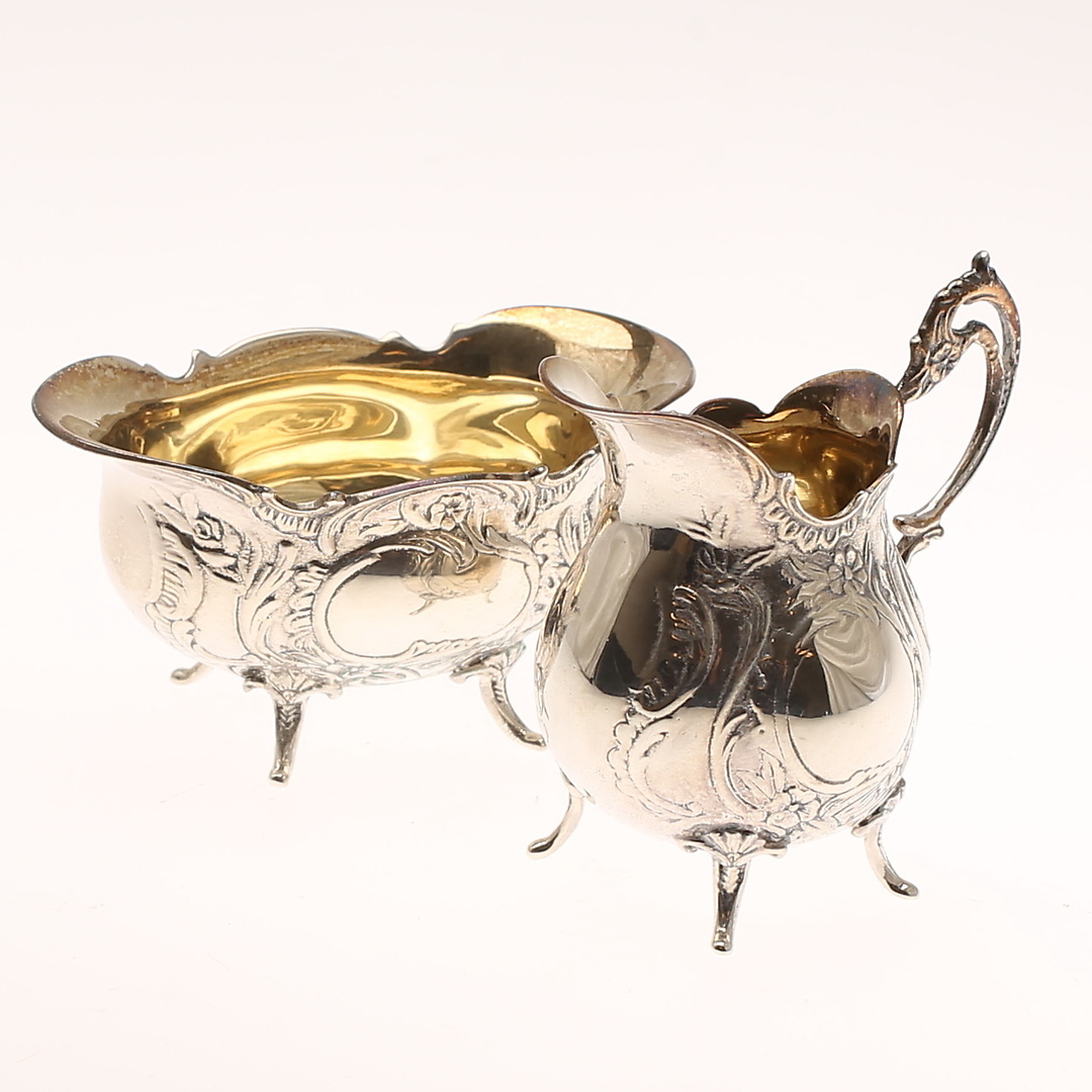 577273. GRÄDDKANNA, SOCKERSKÅL, silver.