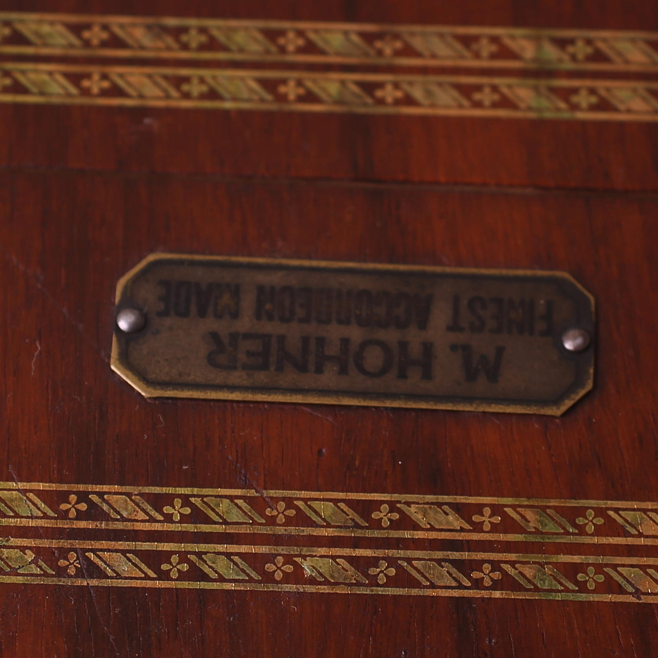 Skylt: "M.Hohner - finest Accodeon made".