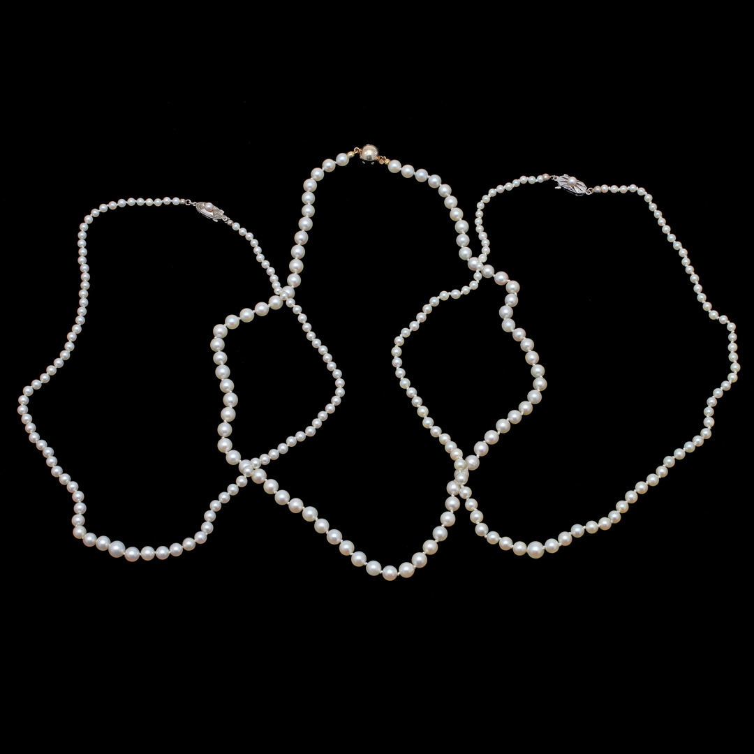 57870. PÄRLCOLLIER, 3 st, silverlås.