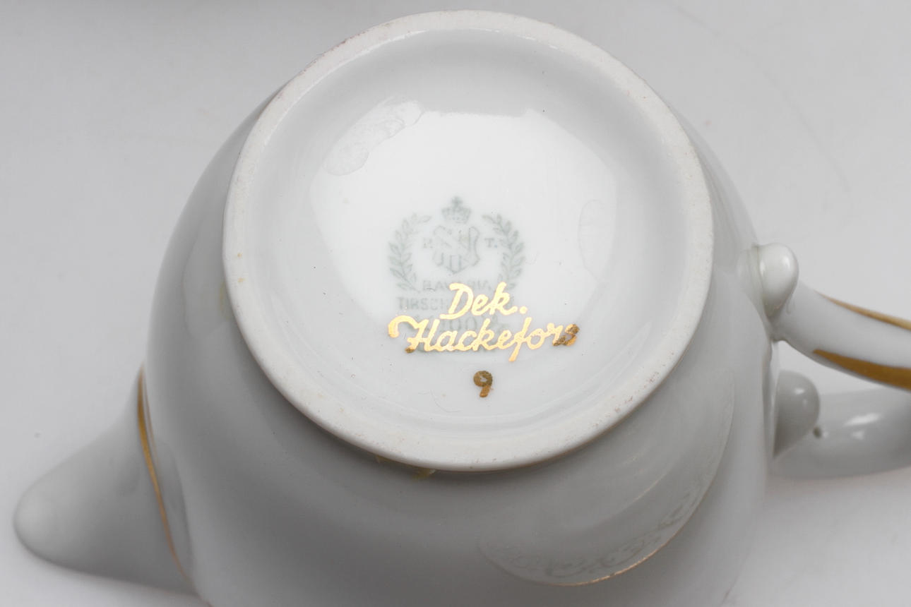 Kaffegods med annan dekor. Märkta dek Hackefors.