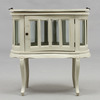 Vitmålad med svängda ben samt skuren dekor och fasettslipat glas. Längd 75 cm, bredd 40 cm, höjd 76 cm.