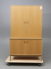 Rak form, ek, två skåp inredda med hyllplan, skyltmärkt. Längd 100, bredd 52, höjd 174 cm.