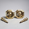 Två liknande ljusstakar, båda med höjd 13cm, diameter 10,5cm.