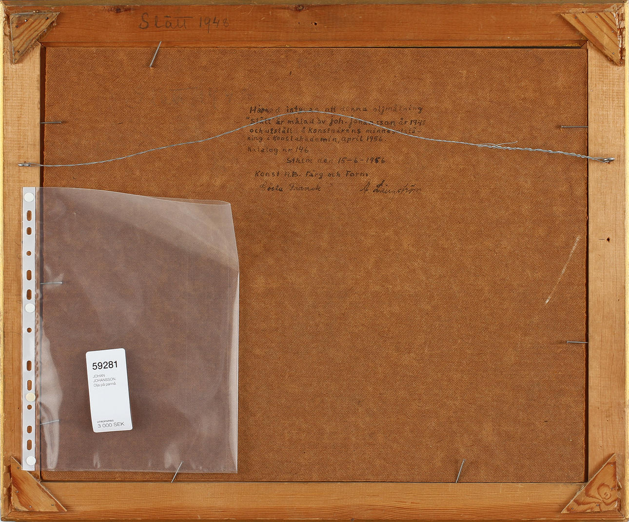 59281. JOHAN JOHANSSON. Olja på pannå.