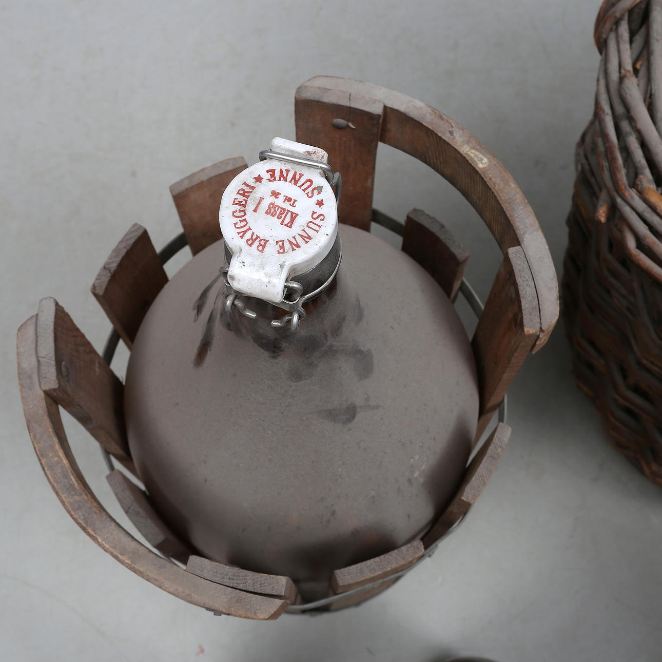 En flaska med hållare av rotting.