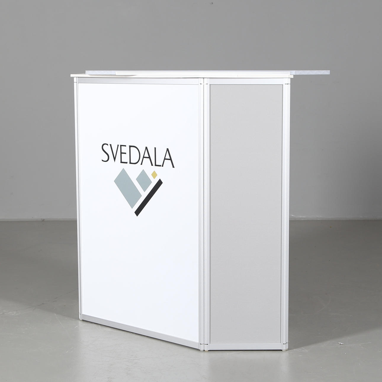 6 stycken åttapanels utställningsskärmar, varav en med 4 tilläggspaneler, 7 roll ups, en vikbar mässväggsställning samt en utställningsdisk.