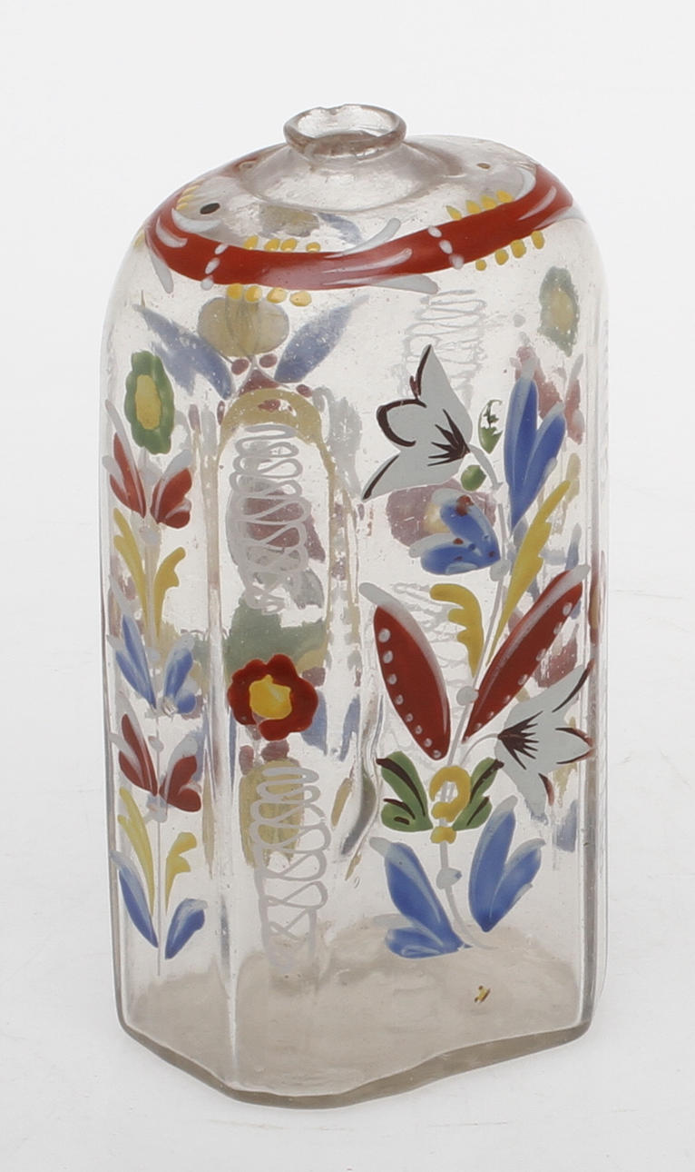 59698. FLASKA, glas, bemålad, 1800-tal.