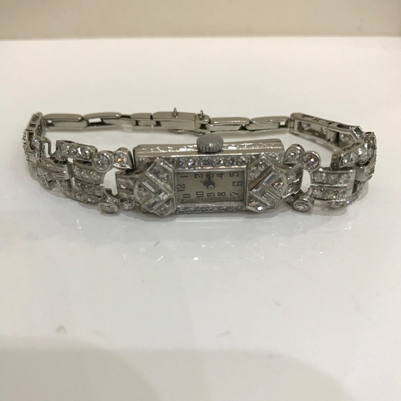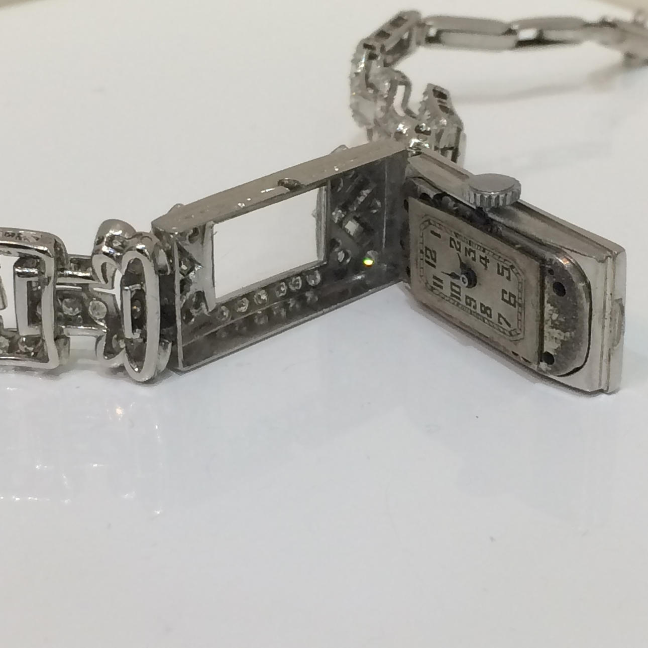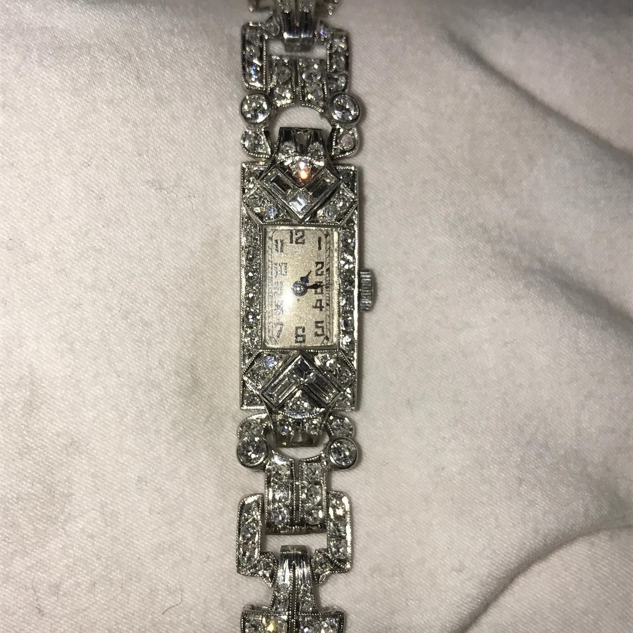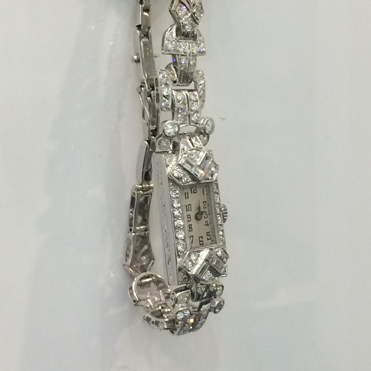 Detta är en original 1930-talet (testad) platina och diamant deco klänning cocktail klocka.