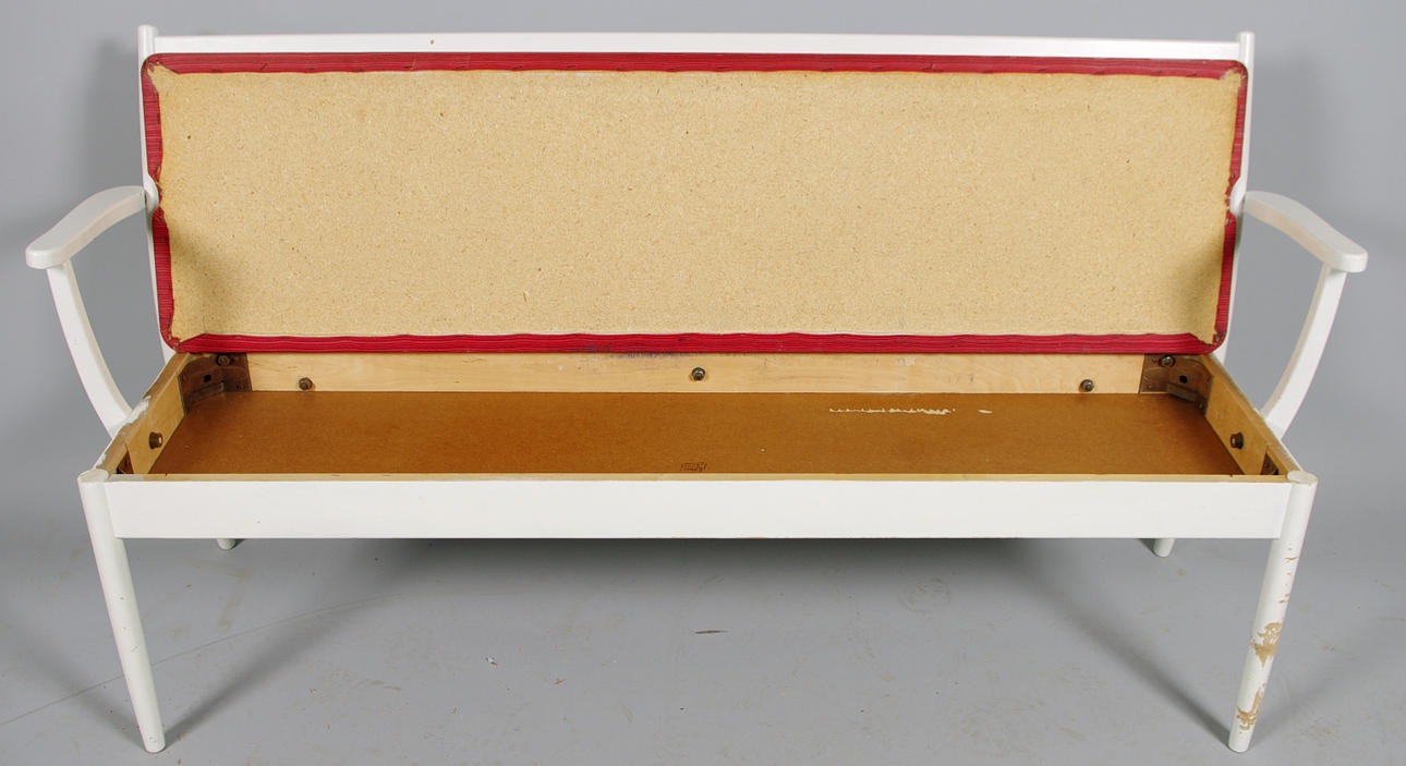 59999. KÖKSSOFFA, vitmålad med galonsits.