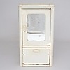 "Doktorsskåp", vitlackerad plåt. Höjd 45 cm, bredd 24,5 cm, djup 12 cm.