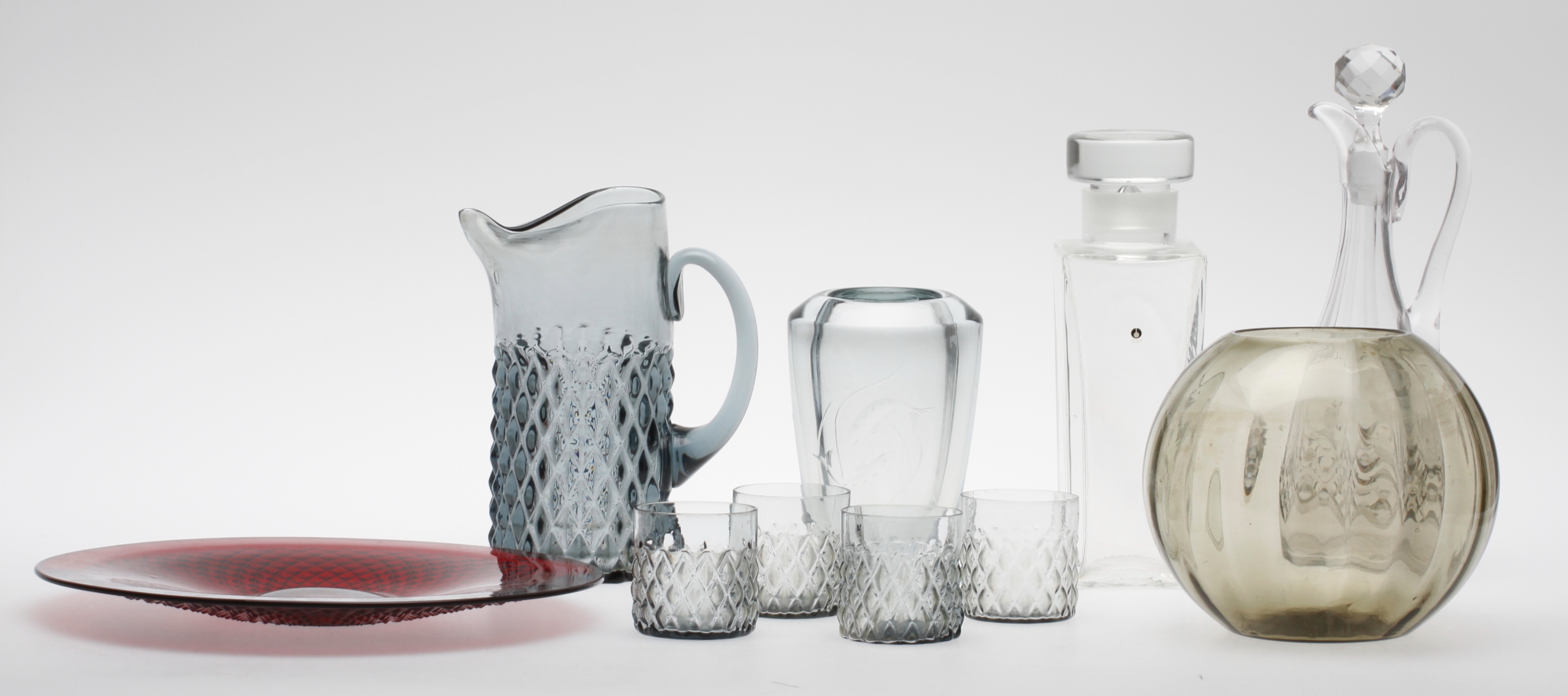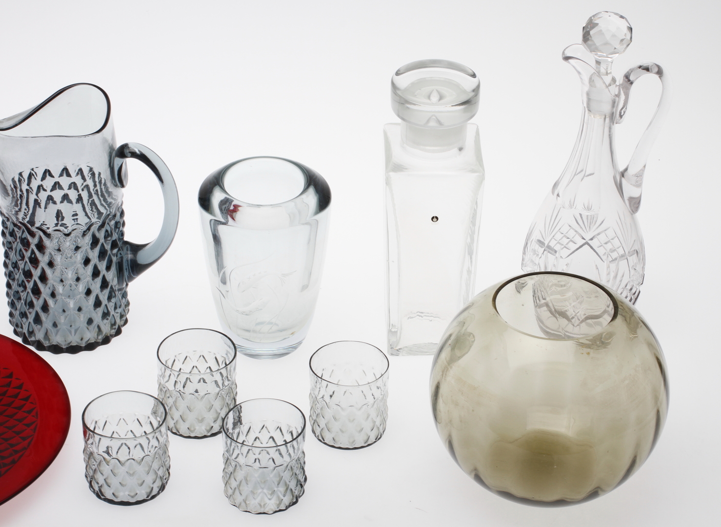 60377. GLASFÖREMÅL, 10 delar, bl.a. Pukeberg.