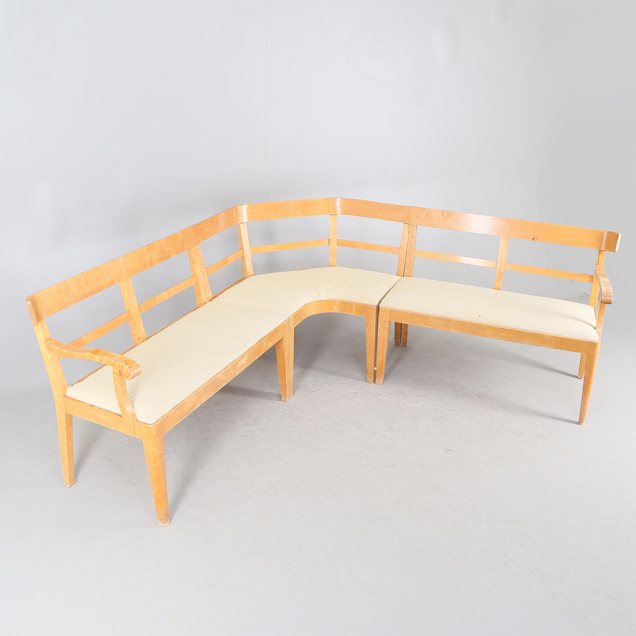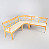 3 delad. 2 sektioner, längd 110 cm, 1 sektion längd 100 cm Bredd 50 cm, rygghöjd 76 cm.