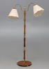 Mässing och trä, 2 ljusarmar. Höjd ca 145 cm.