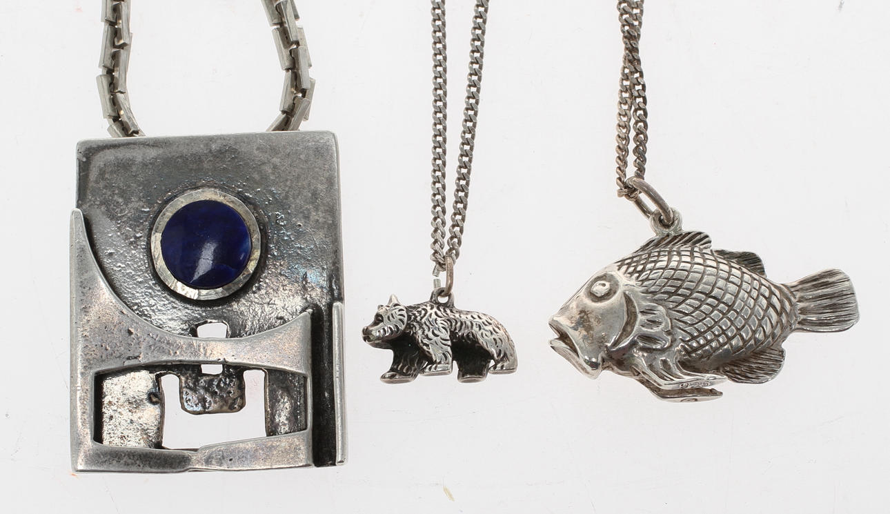 Hänge i form av fisk, stmpl Merie?, längd ca 4 cm.