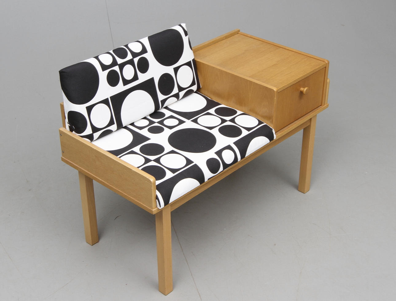Ljus ek/Svartvitt tyg. Längd 82, bredd 39 cm.
