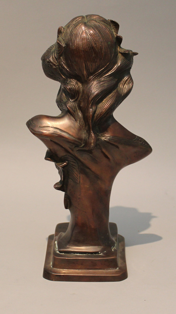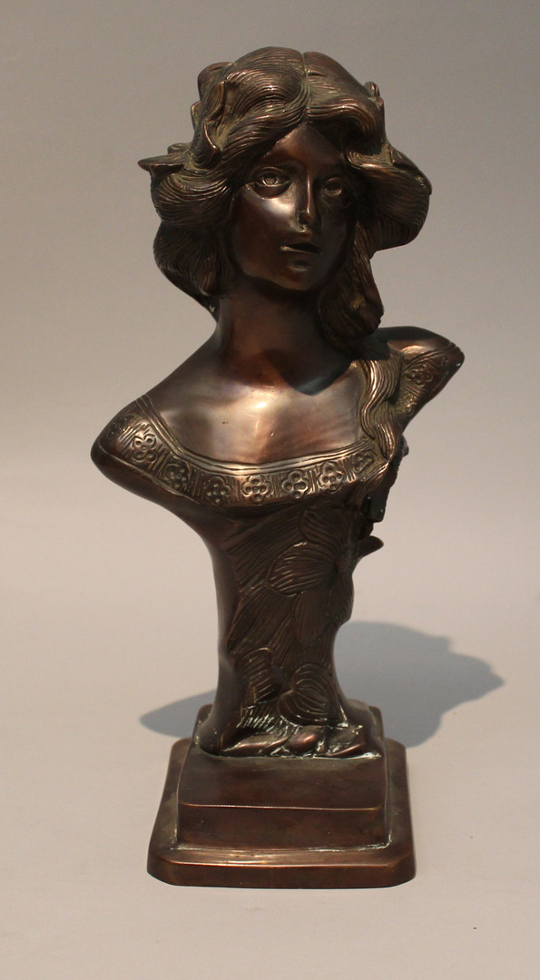60661. OKÄND KONSTNÄR. Kvinnobyst i brons. 1900-tal. Osignerad.