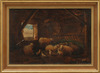 Interiör med får och höns. 33 X 49 cm.