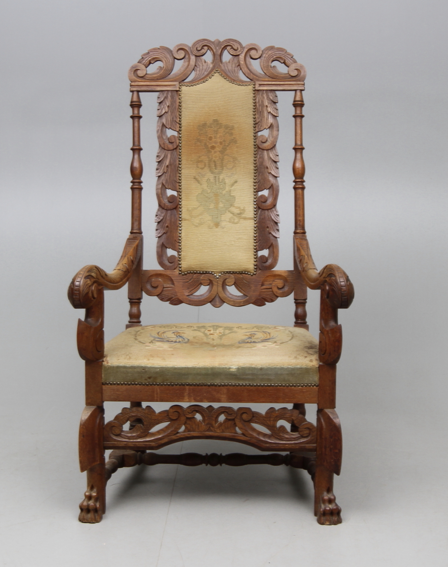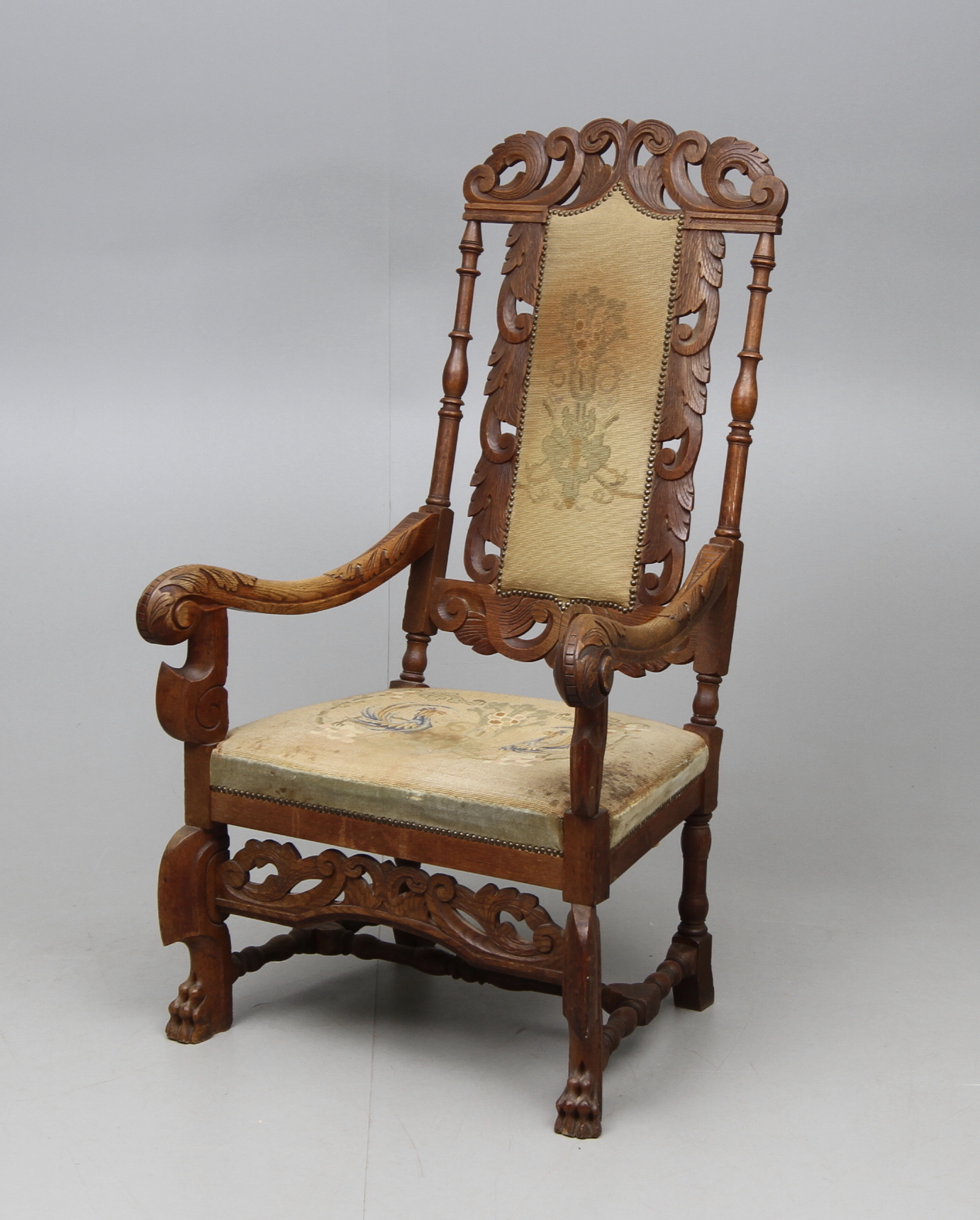 60797. KARMSTOL, ek, Barockstil, ca 1900.