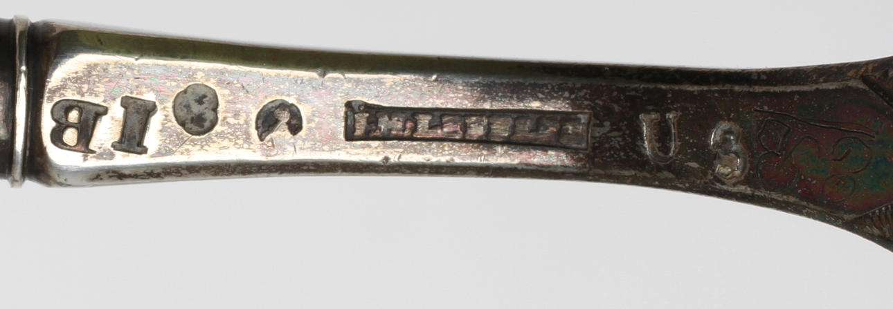 60898. SOPPSLEV, trä och silver, otydlig stämplar 1826.